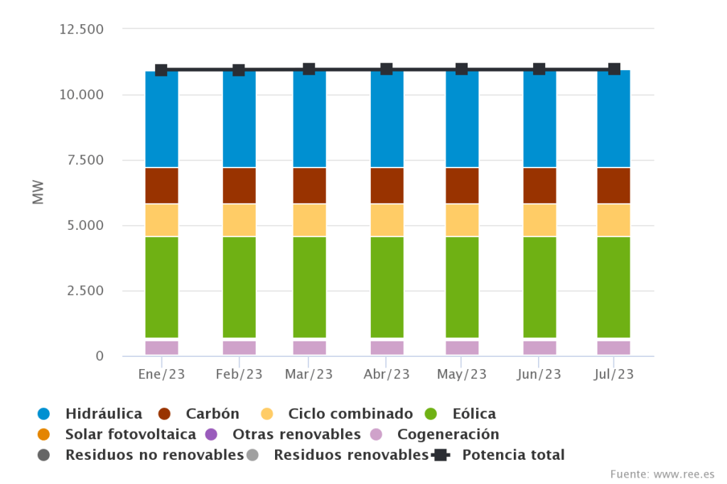 A produción das centrais de ciclo combinado a gas fósil aumentou o 68% no primeiro semestre de 2023 con respecto ao mesmo período de 2018-2022 e tan só baixou un 4% en comparación con 2022, a pesar da recuperación da produción hidroeléctrica.